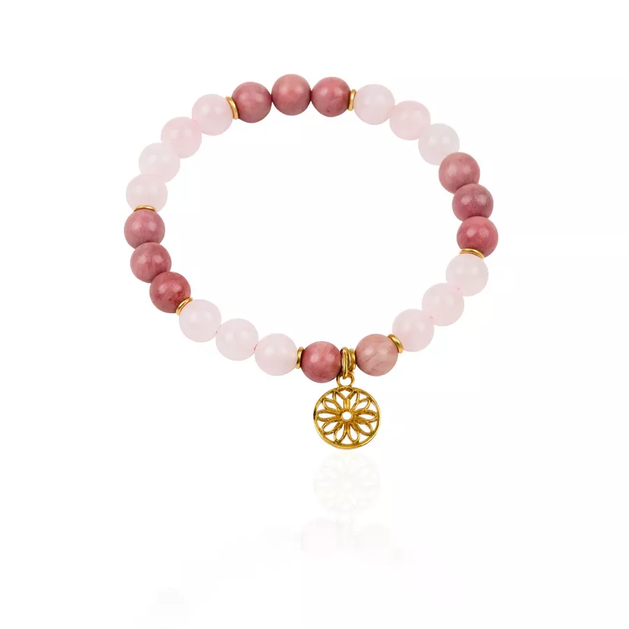 Этот браслет сочетает в себе нежность розового кварца и естественную глубину родонита, образуя спокойную, гармоничную цветовую композицию. Его мягкие оттенки создают комфортный визуальный акцент, который помогает сосредоточиться на ощущении стабильности, самопринятия и уверенности в повседневной жизни.